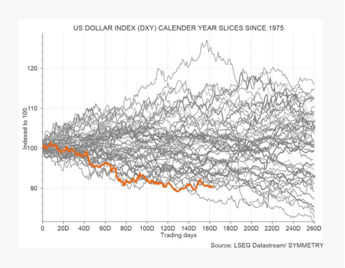 Despite the third-worst yearly performance for the dollar index so far in 2025, it remains pretty strong by historical standards, with room to ease further.